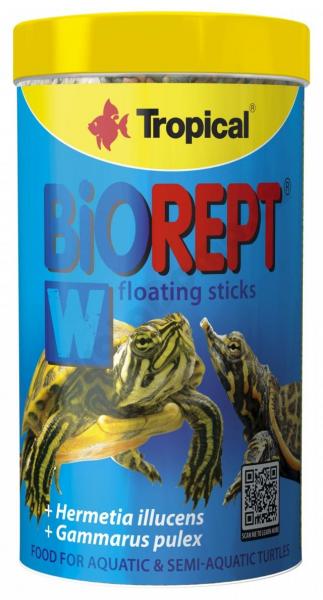 Mnohosložkové krmivo ve formě tyčinek ke každodennímu krmení vodních a bahenních želv, které žijí v akvateráriích. Speciálně zvolené výživné složky zajišťují požadavky želv na výživu. Výborná chuť tyčinek způsobuje, že je zvířata mají velmi rády. Vhodně zvolena kombinace vitamínů a mikročástic zaručuje správný vývoj kosti a krunýře želv, chrání proti deformacím a dalším závažným zdravotním problémům. Želvy, které se pravidelně krmí tyčinkami Biorept W, se rovnoměrně vyvíjejí a mají výbornou kondici.