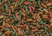 Složení: ryby a rybí výrobky, výrobky rostlinného původu, rostlinné bílkovinné výtažky, měkkýši a korýši (mj. Gammarus pulex 4,8%), obilí, řasy, droždí, oleje a tuky, krmné směsi minerálního původu (včetně zeolitu 1%)